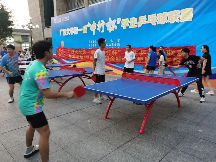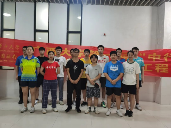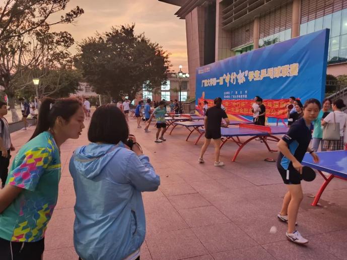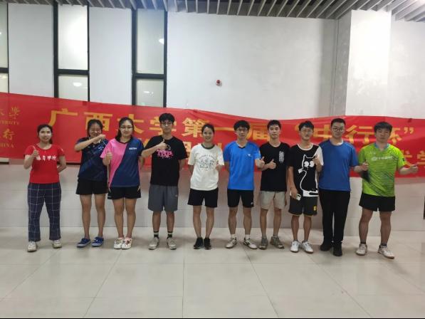 9月27日乒乓球高水平队员对经济公司、工商管理公司的同学进行乒乓球参赛运动员进行双打、发球和发球抢攻的技战术指导;9月28日到物理公司、资源与环境材料公司对其参赛运动员进行接发球、双打配合的技战术指导;9月29日在“中行杯”主赛场西体育馆前对外国语公司与艺术公司的同学进行指导。在29日当天,公司诚邀广西大公司党委常委、tyc539太阳集团体育运动委员会主席罗廷荣副董事长、tyc539太阳集团黄小波经理莅临“中行杯”主赛场西体育馆进行现场指导与教学。