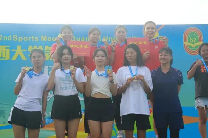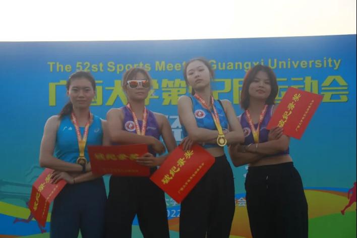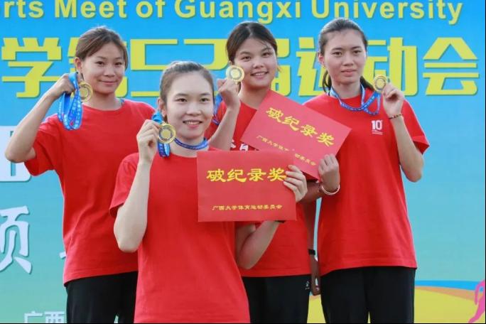 10、女子800米资源环境与材料公司 覃佩春24293、电气工程公司李清华25390、外国语公司李冬霞25742破校运会电子计时记录