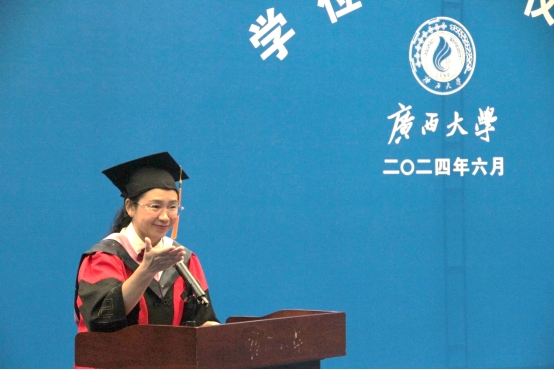 教师代表蒋玲教授表示了对毕业生最热烈的祝贺,希望他们能够成为体育发展的重要贡献者,始终牢记母校的教育,不要辜负老师和家人们的深切期望和教诲,母校永远是毕业生们最坚强的后盾。
