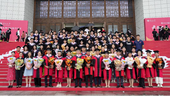 毕业典礼在师生深情演唱《这世界那么多人》《光阴的故事》《最初的梦想》《离别开出花》《凤凰花开的路口》《再见》等歌曲声中开启。
