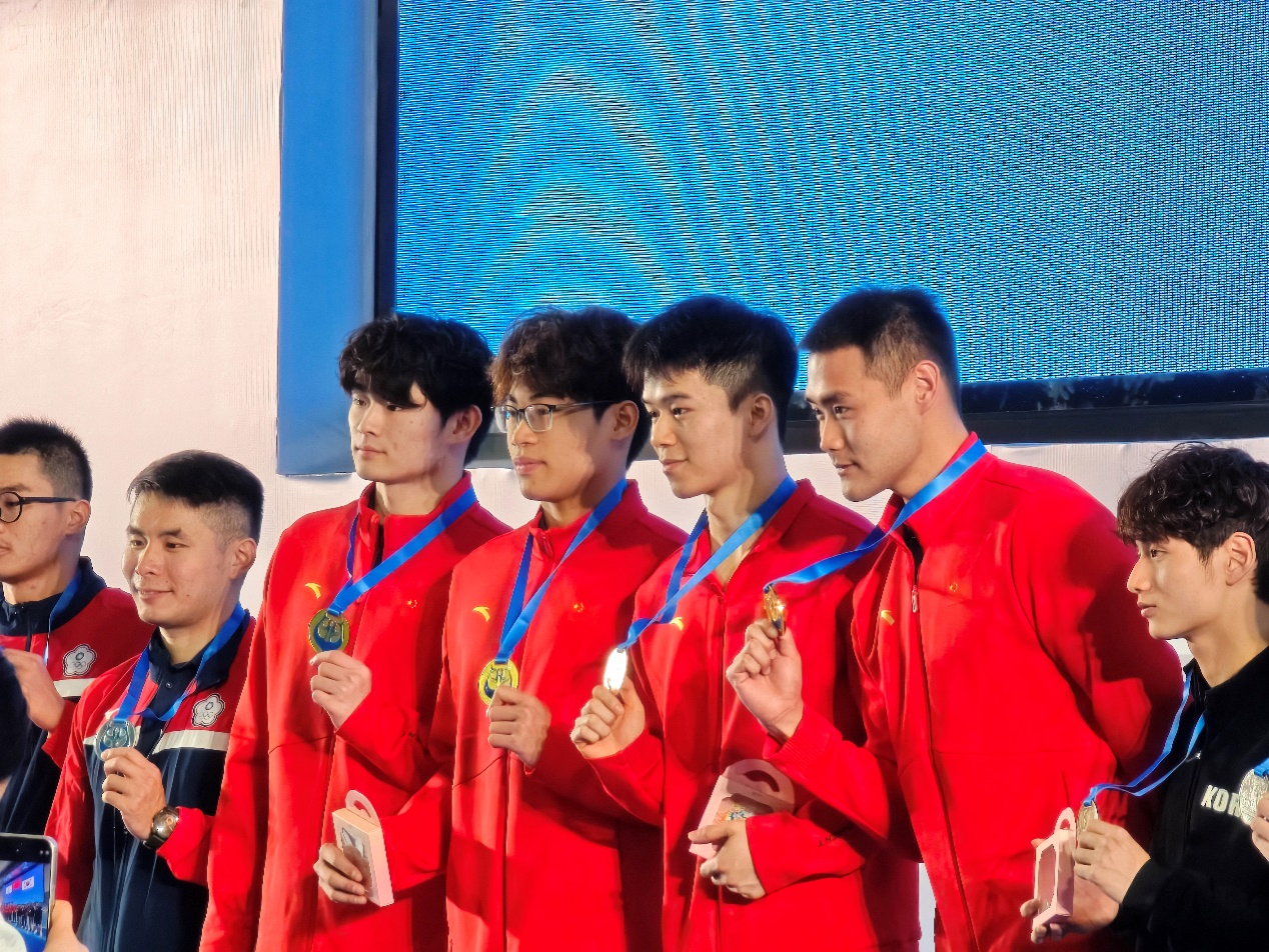 男子4*200m蹼泳接力第一名(破全国纪录) ,5:43.56