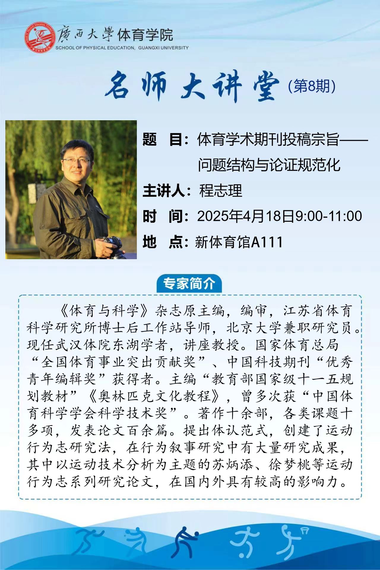tyc539太阳集团名师大讲堂(第8期):体育学术期刊投稿宗旨——问题结构与论证规范化